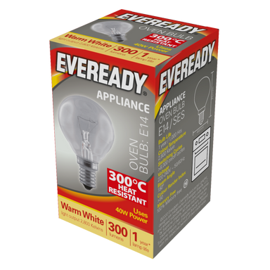 Eveready Oven Bulb 40W - 220v - 240v Golf SES E14 Oven Appliance Bulb Up To 300 Degrees Heat Resistant Light output 400 Lumens Bulb life 1000 Hours...