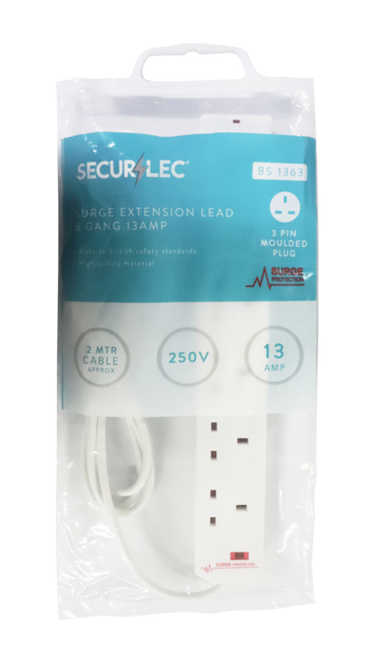 Securlec 6 Gang Extension Lead With Neon Light & Surge Protection 2m